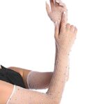 Women Rhinestone Fishnet Long Gloves Mesh Sparkly Glitter Fashion Opera Glo…