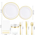 GATHER 350pcs Gold Plastic Plates – Disposable Plastic Dinnerware Set…