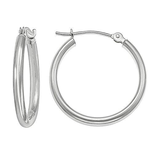 14k White Gold Classic Shiny Polished Round Hoop Earrings, 2mm tube