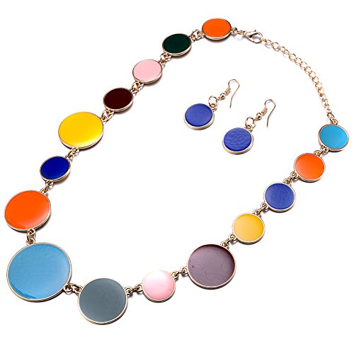 DiLiCa Women Statement Bib Necklace and Earring Set Girl Charm Costume Choker Novelty Enamel Jewelry Set