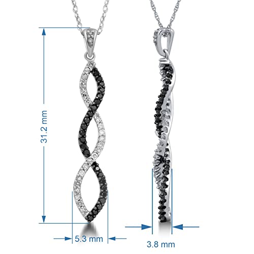 Jewelili 10k White Gold Twist Pendant Necklace with Round Black and White Diamonds, 1/4 cttw, 18″ Rope Chain