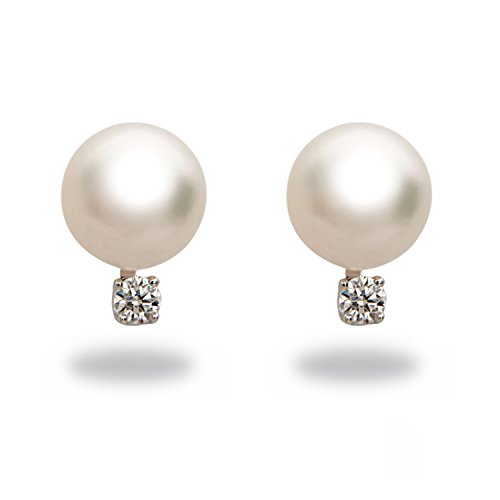 THE PEARL SOURCE 14K Gold AAA Quality Round Genuine White Akoya Cultured Pearl & Diamond Michelle Earrings for Women