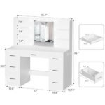 YESHOMY Vanity Desk with Mirror, Power Outlet and 10 Lights, Makeup Table w…