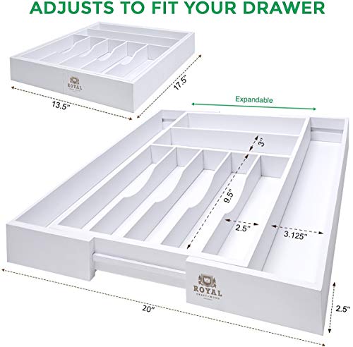 • EXTENDABLE KITCHEN DRAWER ORGANIZER. Royal Craft Wood silverware organizer can be placed in the drawers of all sizes – it is adjustable so that fits like a glove