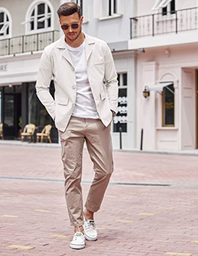 COOFANDY Men’s Casual Sport Coat Cotton Linen Blazer Jacket Lightweight Suit Jackets White