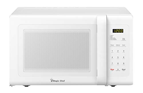 Prepare a snack or a meal with the Magic Chef 0.9 cu. ft. countertop microwave oven. This compact microwave offers 900 watts of power and 10 power levels along with 6 Auto Cook menus to help you quickly and easily prepare a wide variety of foods. Plus, the auto defrost by time or weight eliminates the guesswork in determining defrosting time.