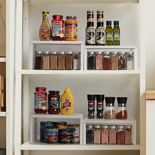 NEX Kitchen Counter Shelf, Stackable Cabinet Shelf Organizers Expandable Countertop Shelf for Pantry – Set of 4 – Off-White