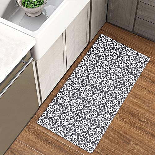 QSY Home Kitchen Anti Fatigue Floor Mats 20x39x1/2-Inch Comfort Standing Rugs for Laundry Bath Room PVC Foam Bevel Edges Non-Slip Waterproof Mats, White/Black