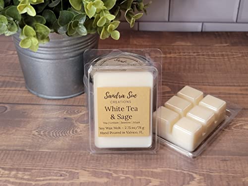 Sandra Sue Creations White Tea & Sage Soy Wax Melt, 2.75 oz each – TWO PACK All Natural, Highly Fragrant, Long Lasting