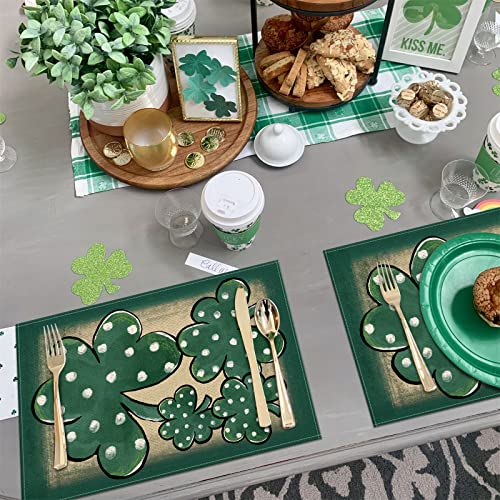 St. Patrick’s Day Placemats Set of 4,12×18 Inch Green Shamrock with White Dots Heat-Resistant Place Mats,Green Irish Table Decors for Seasonal Farmhouse Kitchen Dining Holiday Party