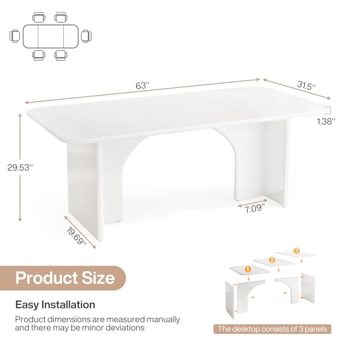 Tribesigns Modern White Dining Table for 4-6 People, 63″ Large Rectangle Kitchen Table with Arch Design Legs, Dinner Table Kitchen & Dining Room Furniture