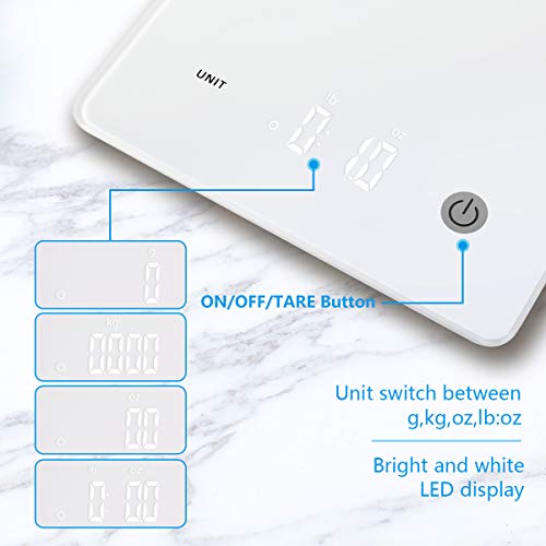 Vitafit 22lb Digital Kitchen Food Scale, Clear LED Display, Tempered Glass, White