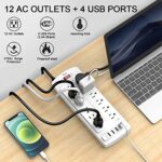 Power Strip, Tcstei Surge Protector with 12 Outlets and 4 USB Ports, 6 Feet…
