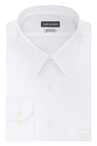 Van Heusen Men’s Poplin Regular Fit Solid Point Collar Dress Shirt, White, 15.5″ Neck 34″-35″ Sleeve