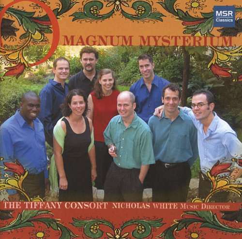 The Tiffany Consort was founded in 2003 to bring together several of New York’s finest singers with the intention of presenting virtuosic choral music from all periods, one voice to a part, under the direction of Nicholas White. While the core of the ensemble is eight soloists, the number of singers varies according to the specific repertoire to be performed. The group made its much-praised debut in two concerts, which featured the complete motets of Johann Sebastian Bach, in March of 2003 sung one voice to a part without accompaniment. The success of these performances led to a full season of works to be presented on St. Michael’s Music and Arts 2003-2004 concert season, at St. Michael’s Episcopal Church in Manhattan. The ensemble performed three programs highlighting composers from England, Italy and Germany – Byrd & Britten, Palestrina & Scarlatti, Schutz & Brahms. In addition to the trademark performing style of one voice to a part, the group’s main interest lies in juxtaposing works of Medieval and Renaissance composers with those of 20th Century or Modern day composers. Tiffany actively pursues the commissioning of new works which pair well with ancient masterpieces, all fitting the performing resources of our ensemble. This is the first commercial recording of the Tiffany Consort.