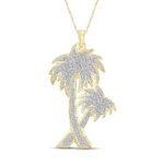 White Diamond Accent 14kt Gold Plated Brass Palm Tree Pendant