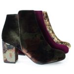 Velvet Oriental Floral Printed Block Heel Ankle Booties, Women’s Shoe