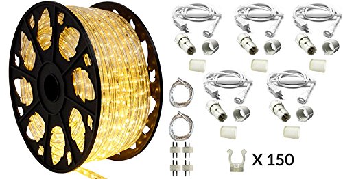 AQL 150′ Outdoor Rated LED Rope Light Kit – 120V – UL Listed (Warm White, Deluxe)