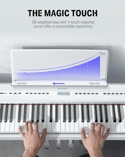 Home » Musical Instruments » Donner DEP-20 Beginner Digital Piano 88 Key Full Size Weighted Keyboard, Portable Electric Piano with Furniture Stand, 3-Pedal Unit, White