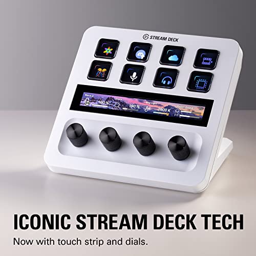 Elgato Stream Deck + White, Audio Mixer, Production Console and Studio Controller for Content Creators, Streaming, Gaming, with Customizable Touch Strip dials and LCD Keys, Works with Mac and PC