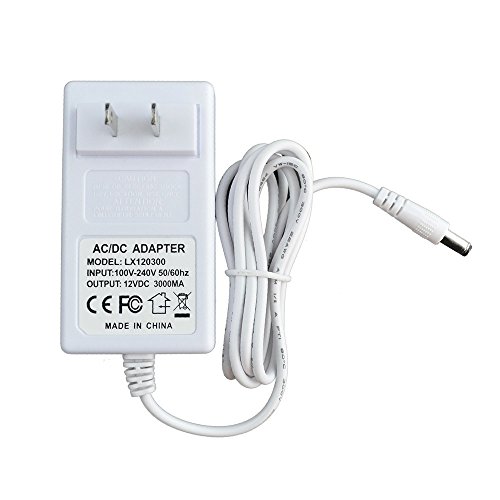 HitLights 3A LED Strip Light 36 Watt Power Supply, 110V AC to 12V DC Transformer, Low Voltage LED Tape Light Driver, White