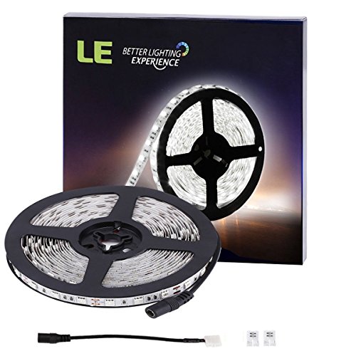 LE 300 SMD 5050 LEDs Flexible Strip Lights, 6000K Daylight White, Non-waterproof, 12 Volt, Indoor Party Christmas Holiday Festival Celebration Home Decoration 16.4ft