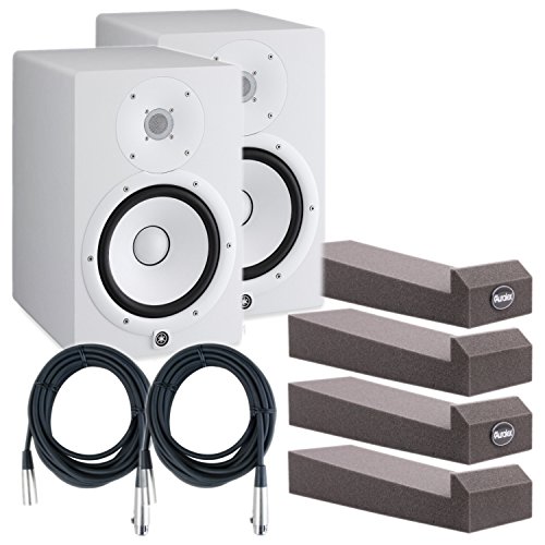 Pair of Yamaha HS8W Powered Studio Monitors (White) w/ MoPads and Cables