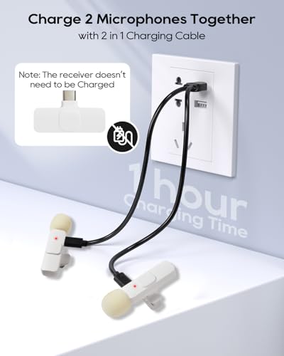 • 2 in 1 Fast Charging: With 2 type c heads, the charging cable can full charge 2 microphones together in 1 hour. Using 2 microphones in turn when 1 of them runs out of the battery to get 4h+4h Working Time. Note: The receiver doesn’t need to be Charged