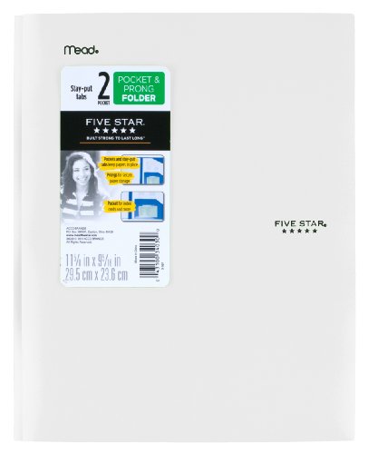 Five Star Stay-Put Portfolio with 2 Pockets and Fasteners, White (72494)