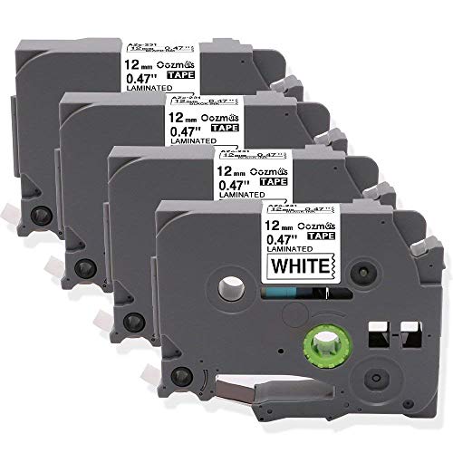 Replace 12mm 0.47 Inch Laminated Black on White TZ Tape TZe-231 Compatible for Brother P Touch D400 1280 1800 1880 1900 Label Tape, 4 Pack