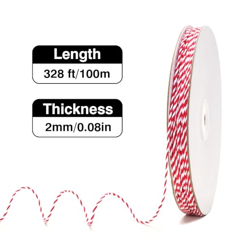 Click for More Images [PREMIUM COTTON MATERIAL] – Red and white twine are made of natural cotton,soft and good touch feeling,resist fraying and fading,no harm to environment,no strange smell, can be used with confidence[RED & WHITE TWINE SIZE]...