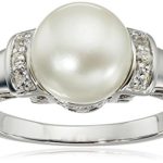 Sterling Silver, Freshwater Cultured White Pearl, and White Topaz Ring (9-9…