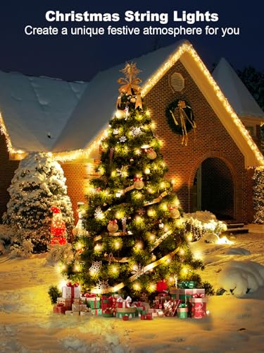 ROSCOO 300 LED String Lights Outdoor, 100FT Warm White Christmas Lights for Outside with Remote, Timer Memory Function, 8 Modes Waterproof Fairy Lights Plug in, for Xmas Tree Bedroom Patio Party