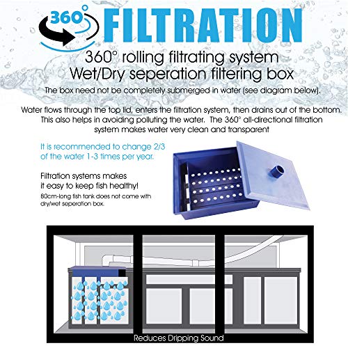 Features an LED lighting system, including filtration system with filer media, also a high-quality water pump.