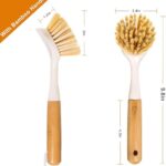 FunCee 2 Pack Kitchen Dish Brushes with Bamboo Handle, Dish Scrubber Built-…