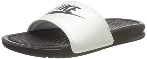 - WOMEN’S SLIDES: The Nike Benassi “Just Do It.” sandal for women is designed with style and athleticism in mind. Nike corporate logo printed on top of women’s slide sandal.