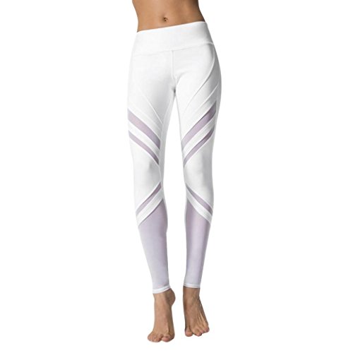Clearance!Napoo Women Mesh Patchwork High Waist Sports Yoga Fitness Long Leggings (L, white)