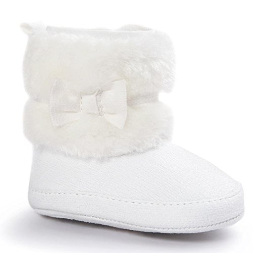 Orangeskycn Toddler Boots for Girls,Crib Shoes Bowknot Winter Soft Sole Snow Boots (12~18M, White)