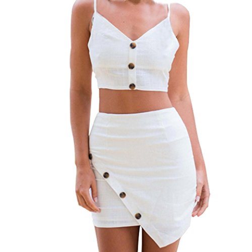Tsmile 10Pcs Summer Holiday Skirt Hot Womens Button Crop Tops Bandeau Set Short Blouse White