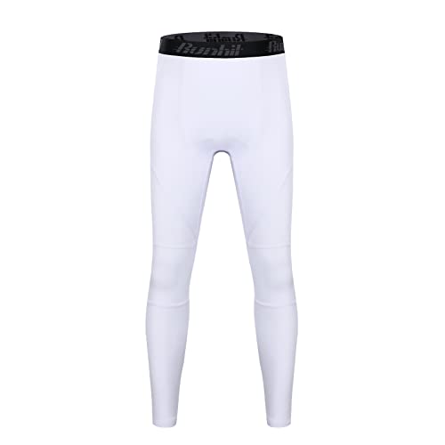 Runhit Boys Compression Leggings,Athletic Tights Basketball Compression Pants,Youth Boys Base Layer Pants Sports Legging White L