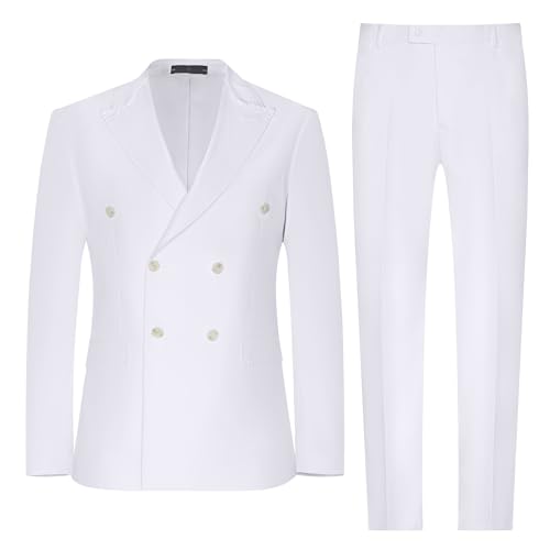 ZKHOECR Mens Double Breasted Suit White Suit Men Slim Fit Suit Jacket and Dress Pants 2 Piece Wedding Prom Men Suit Outfits L