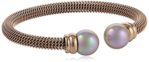 Modern steel-mesh cuff bracelet finished with two simulated...