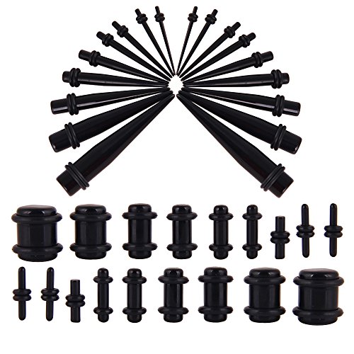 36PCS 14G-00G Acrylic Ear Stretching Kit Taper and Plugs Body Piercing Jewelry Set This gauge stretching kit comes with tapers and plugs in sizes 14G all the way up to 00G.This is an all in one stretching kit that is budget friendly. Surper...