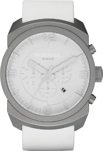 Arrive on time with this stylish chronograph watch from Diesel. The stainless steel case features an all white dial with a date window for added functionality. The white silicone strap is molded to fit perfectly flush to the case. 2 Year...