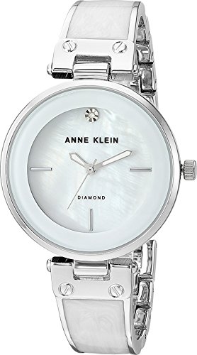 Be stylishly on time in a white enamel bangle watch by Anne Klein. The subtle marbleized effect gives the bracelet sophisticated chic and the matching dial is accented by a genuine diamond at 12 o'clock plus silvertone markers for tasteful shine....
