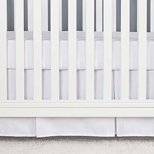 TILLYOU pleated 100% cotton crib skirt adds a touch of softness to any cribs. The durable poly/cotton centerpiece covers the spring or board to protect your mattress. This crib bed skirt is 14" deep with a finished baby hem and split corners to...