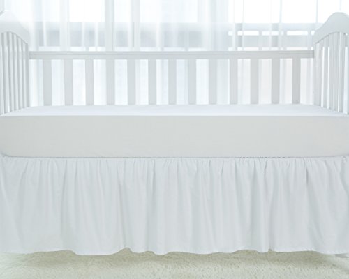 TILLYOU ruffled 100% cotton crib skirt adds a touch of softness to any cribs. The durable poly/cotton centerpiece covers the spring or board to protect your mattress. This crib bed skirt is 14" deep with a finished baby hem and split corners to...