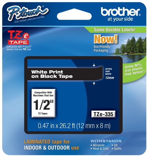 Package Include: 4x TZe 335 label tapes. Color: white on black. Width: 12mm (0.47 inches). Length: 8m (26.2 Feet). Material: Plastic. Type: Replacement Brother P touch TZe Standard Laminated Tape. Split Back: Yes. Features: The thermal transfer...