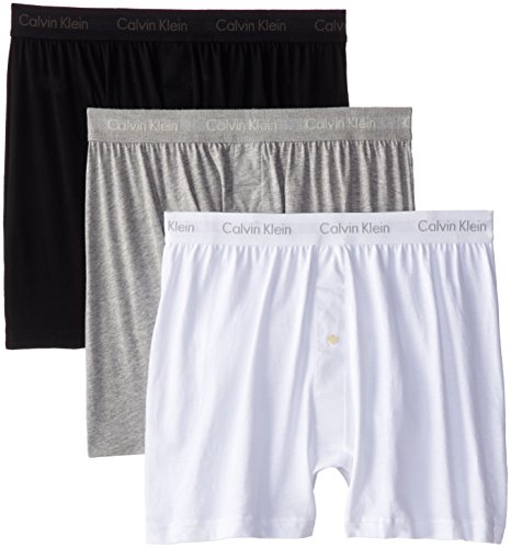 Knit boxer Three pairs of knit boxers featuring elastic logoed waistband and functional flyElasticized Calvin Klein logo waistbandCalvin Klein basics, Packs are available in assorted colorsSoft and breathable cottonBetter elastic for comfortable...