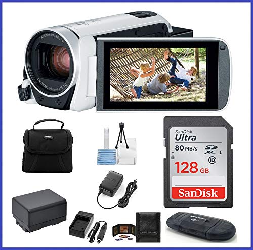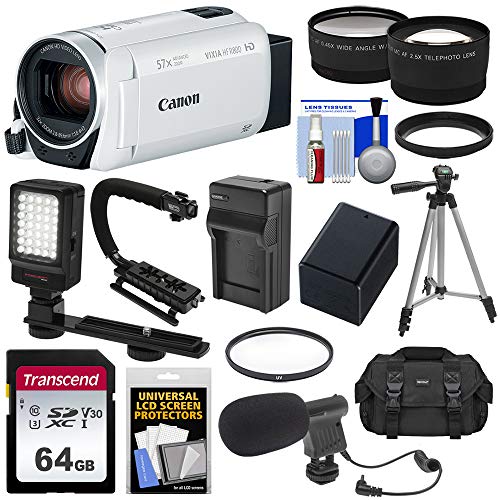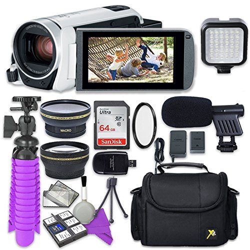 This Canon Camcorder Bundle Includes: Canon VIXIA HF R800 Camcorder (White) Sandisk 64 GB Memory Card Hi-Speed SD Card ReaderShotgun MicrophoneUltrabright LED Light0.42x Wideangle Lens2.2x Telephoto LensUV Filter Flexible Spider Tripod Camcorder...